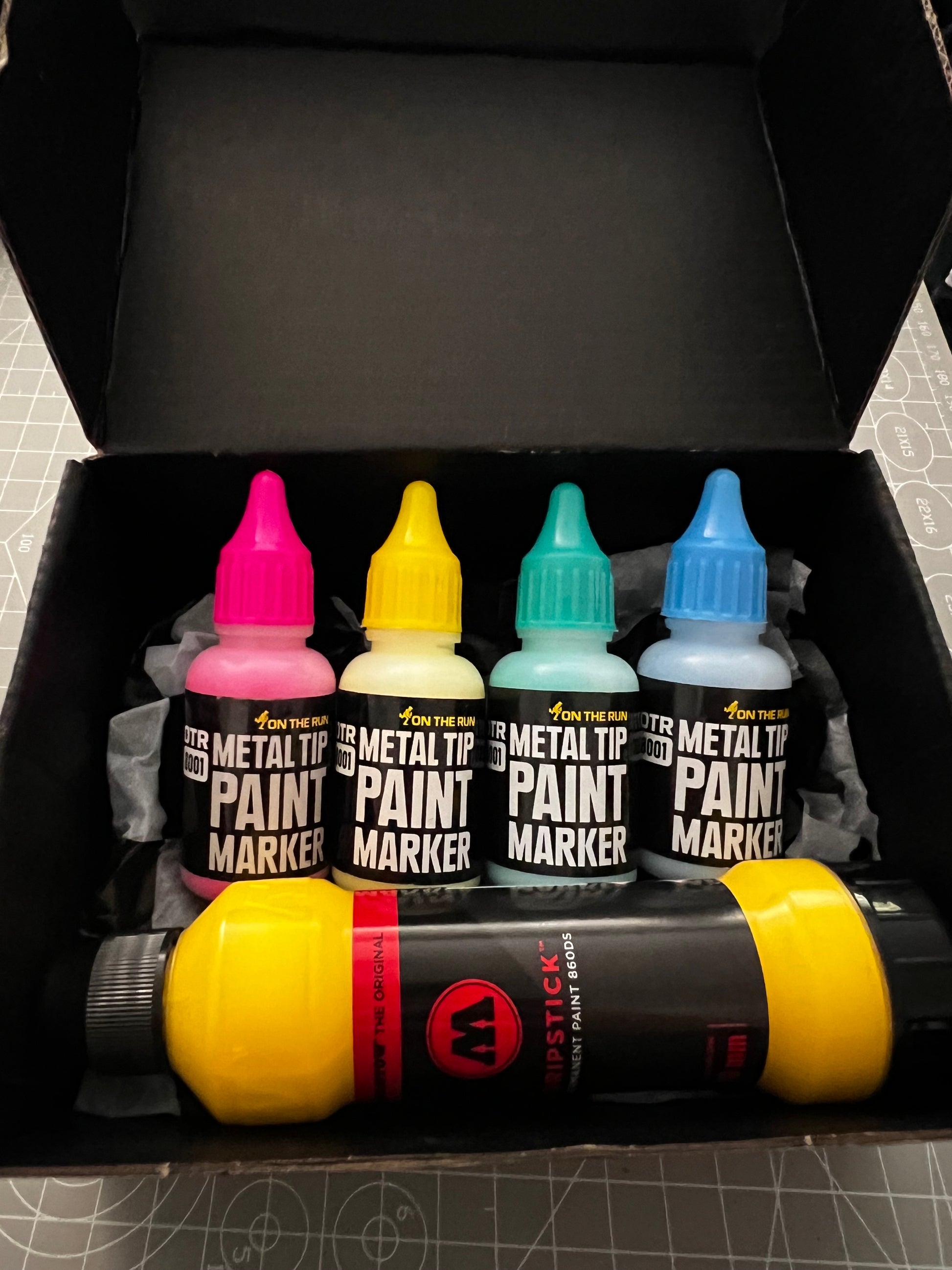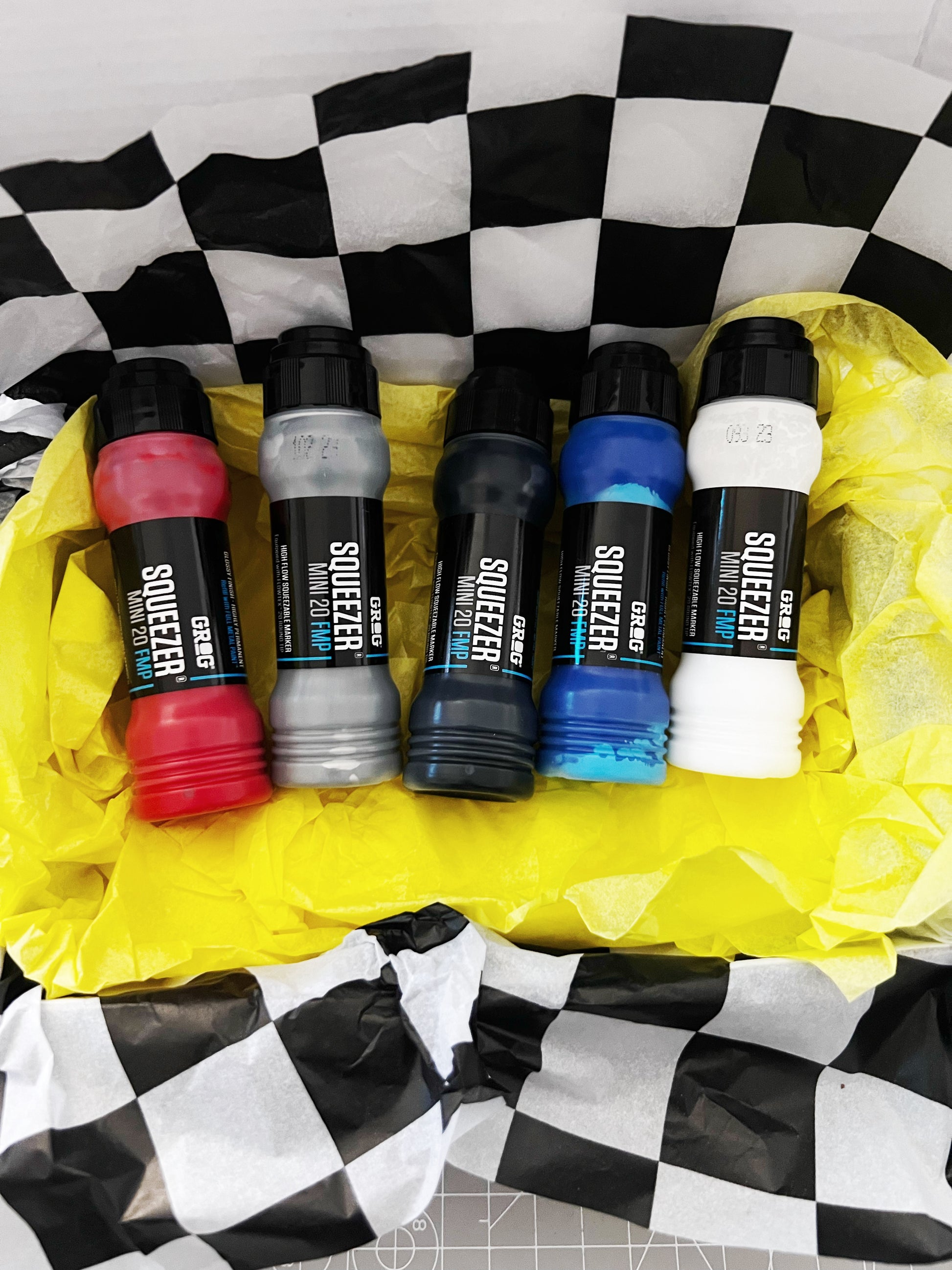 Livrée avec deux feuilles de papier de soie jaune et damier, et deux stickers Chrome Drips Flame et Throwie pour la customiser ou offrir avec.