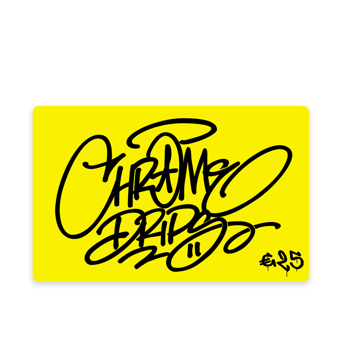 Nos e-cartes cadeaux Chrome Drips, aux montants de 25€, 50€, 100€ ou 200€.