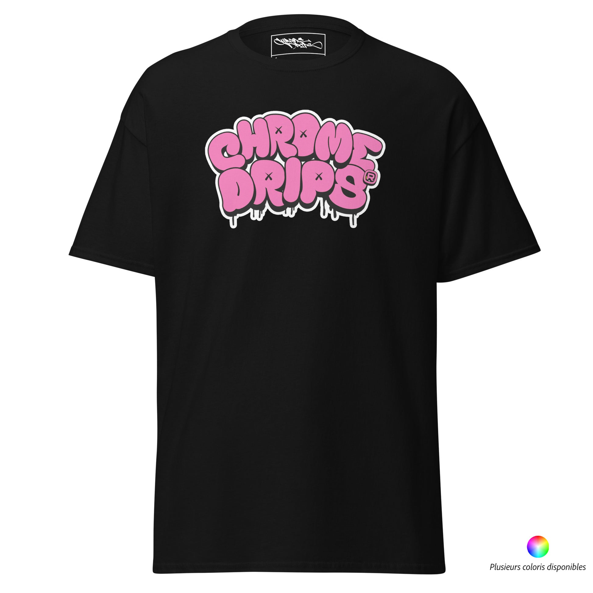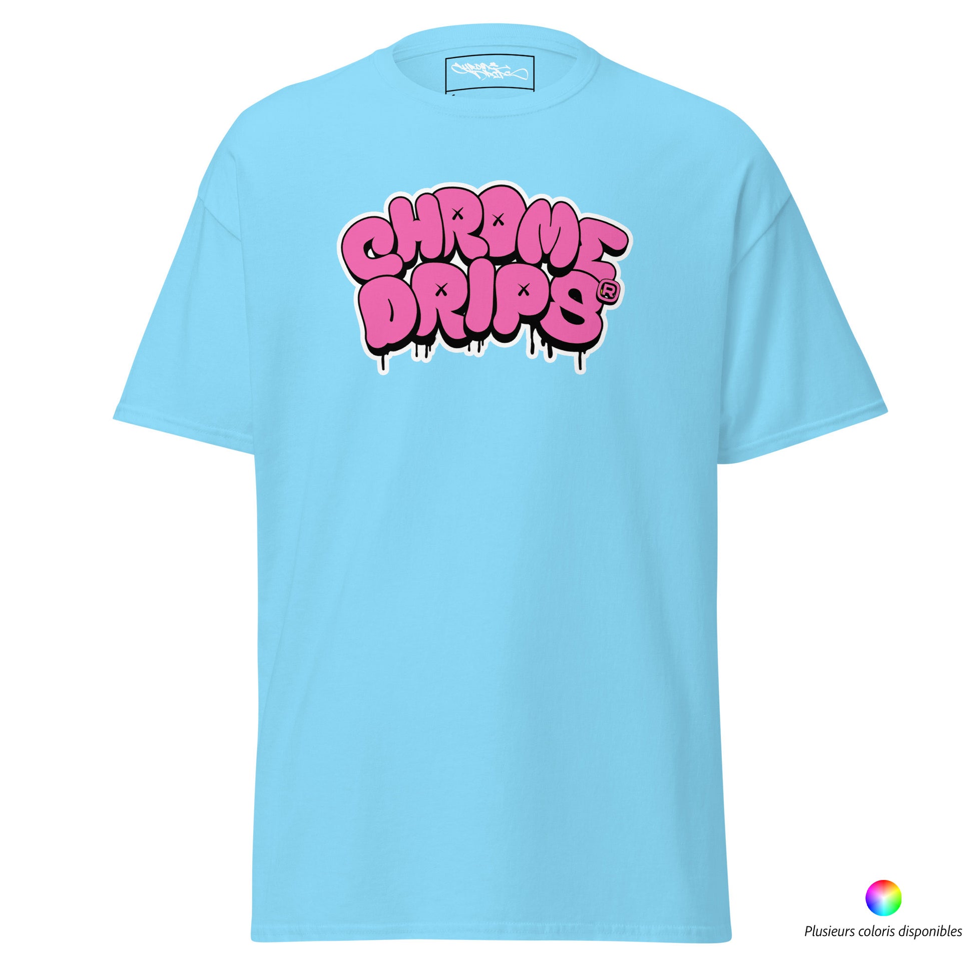 Lignes nettes, coupe parfaite, bubble letters old school posé à la façon sticker : le dernier t-shirt en date Chrome Drips est là !